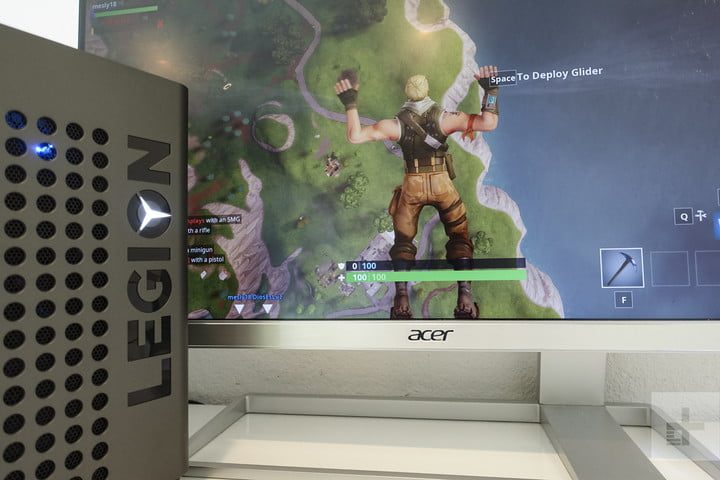El diseño en “cubo” de esta PC de escritorio incluye un asa para que también puedas realizar sesiones de juego serias. Es algo indicativo de toda la visión de este modelo de Legion: una computadora de juego asequible y que es especialmente fácil de actualizar. No se jugarán muchos títulos en 4K, pero puede manejar cualquier título de 1080p que le eches encima, y pequeños detalles como la iluminación RGB y la ventana de plástico en las entrañas de la computadora, demuestran que se pensó seriamente en lo que le gusta a los jugadores.