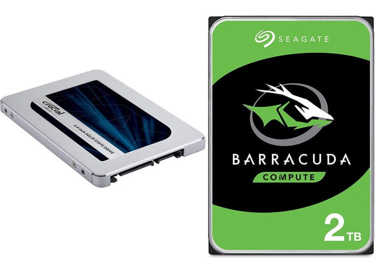Si editas material 4K necesitarás mucho espacio de almacenamiento. La unidad de estado sólido Crucial de alta velocidad con 1 TB garantizará tu acceso rápido a todo tu material, y el disco duro Seagate de 2 TB te brindará bastante espacio de respaldo.