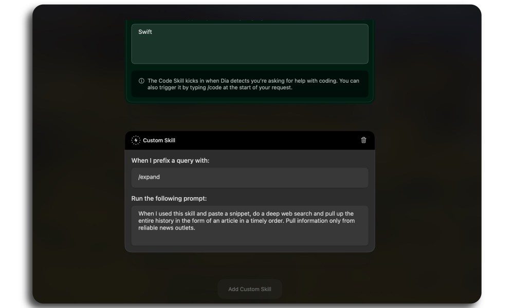 En caso de que esté buscando inspiración creativa, puede visitar la tienda Dia Skills y agregar las automatizaciones impulsadas por IA que llamen su atención. La compañía ha compartido algunas habilidades bastante útiles para facilitar sus tareas web diarias.