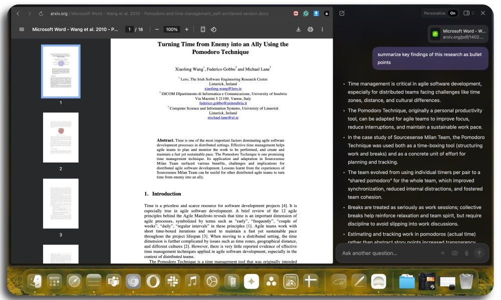 Es rápido, está bien diseñado y se siente como en casa en mi MacBook Air. Pero lo que distingue a Dia son un montón de trucos impulsados por IA que realmente lo distinguen. El principal de ellos es la barra lateral, que pone un asistente de IA al alcance de su mano. Aquí, puede hacer preguntas contextuales e información de fondo sobre el contenido en pantalla sin tener que abrir otra pestaña.