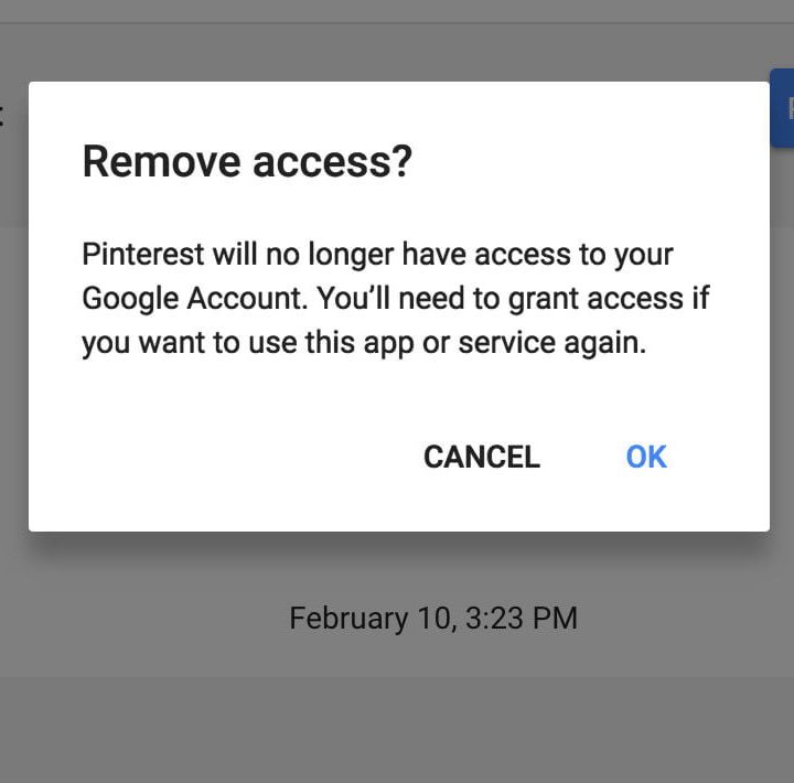 Una vez que hayas encontrado el culpable del espionaje de tu correo electrónico, simplemente haz clic en el nombre de la aplicación. Esto abrirá un cuadro de diálogo que brindará más detalles sobre qué puede ver exactamente la aplicación. Para eliminar los permisos de una vez por todas, haz clic en «Eliminar acceso» y luego en «Aceptar» en el siguiente mensaje.