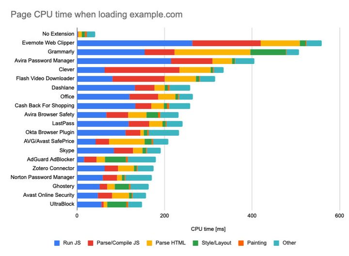 Para el caso de Chrome, un desarrollador llamado DebugBear analizó el impacto en rendimiento que tienen las 1,000 extensiones más populares para el navegador de Google.