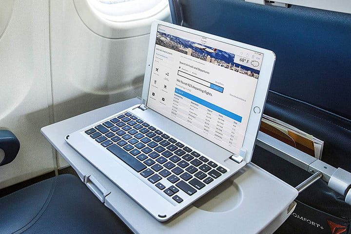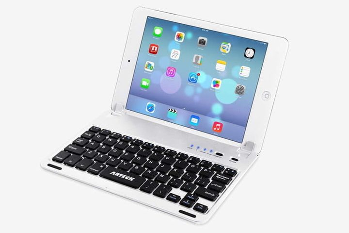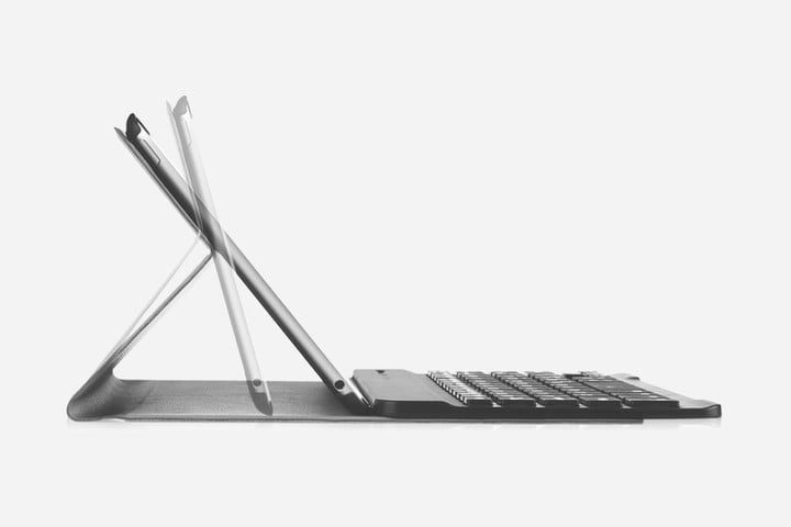 La distribución del teclado tiene teclas más grandes para una escritura más cómoda y se conecta de forma inalámbrica a través de Bluetooth. Las bisagras incorporadas permiten que el dispositivo se incline hasta 130 grados para una visualización cómoda. La cubierta del teclado presenta la función de reposo / activación automática, que se activa al abrir y cerrar la tapa. Una hora de carga produce unas 50 horas de uso ininterrumpido.