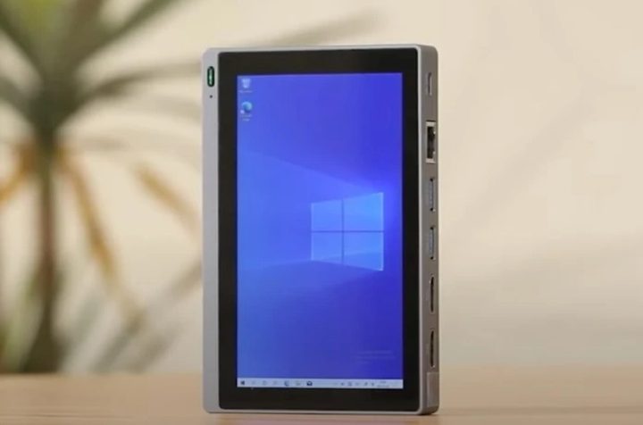 Incluye una pantalla táctil de 5.5 pulgadas 1280x800p en una caja cuadrada de 5.6 pulgadas de altura. Tiene solo 0.7 pulgadas de grosor, y Gole dice que esta es la PC más pequeña y liviana jamás construida.