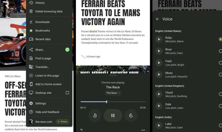 La opción “escuchar esta página” también ofrece 10 opciones de voz en inglés, que cubren acentos para los EE. UU., el Reino Unido, India y Australia.