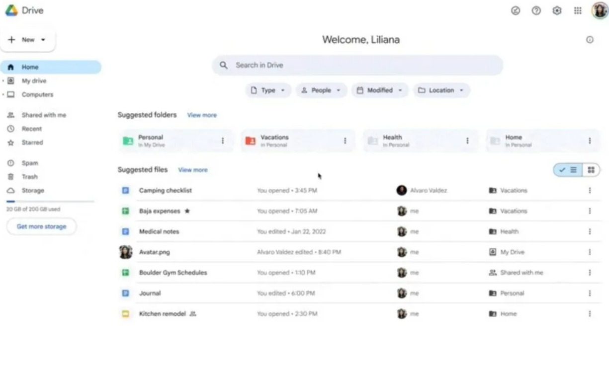 Lo que está haciendo la aplicación en la nube de servicios es actualizar el diseño que ofrecía sugerencias personalizadas de archivos y carpetas basadas en la actividad reciente, los patrones de uso compartido y los eventos conectados de Google Calendar, y los organizaba en pestañas separadas de Archivos y Carpetas.