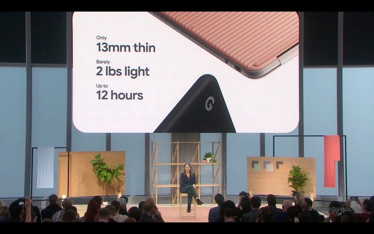 Como una auténtica crónica de una laptop anunciada, la presentación de la Pixelbook Go fue veloz, como un comentario dicho al pasar o un “como ustedes ya lo sabían…”. En menos de dos minutos, confirmamos que la nueva Pixelbook Go tiene un grosor de solo 13 mm, pesa cerca de 2.0 libras y viene una batería que promete entregarnos 12 horas de uso. Aún mejor, se obtienen dos horas más de batería con solo 20 minutos de carga.