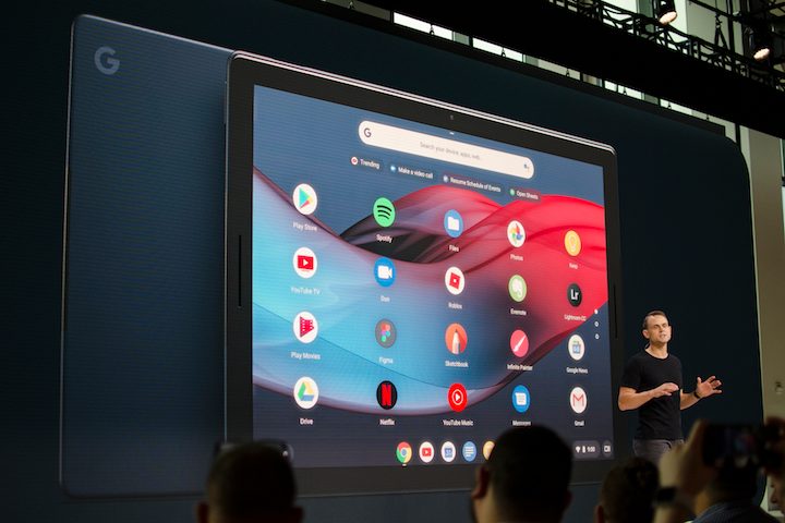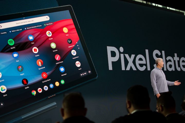 Rick Osterloh, anfitrión de la gala, ya adelantó al comienzo que se presentarían varíos productos, entre ellos, “uno para la vida, el trabajo y el entretenimiento, trayendo la potencia y la productividad de una computadora de escritorio a una magnífica y bella tableta llamada Pixel Slate”. Se trata de un dispositivo que potencia y a la vez se beneficia aún más de Chrome OS, o en otras palabras, una poderosa estación de trabajo que puedes mantener sin problemas en tus manos.