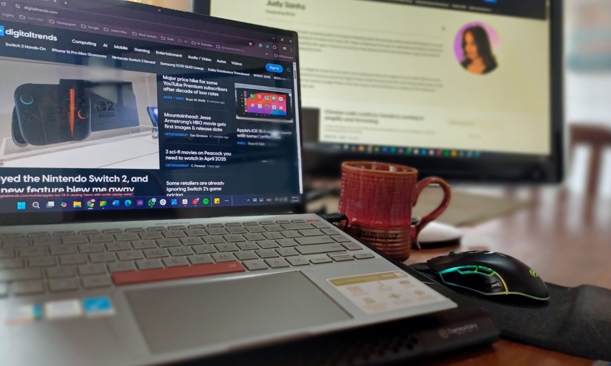 Una de las ventajas más subestimadas de tener una PC con pantalla táctil es la comodidad de usarla sin un mouse, especialmente cuando estoy viendo un programa en la cama. Puedo agarrar rápidamente mi laptop Asus Zenbook Space Edition, ponerme cómodo y desplazarme por Amazon sin necesidad de espacio adicional para un mouse. No hay que andar a tientas ni balancear un trackpad sobre una manta, solo los deslizamientos a los que ya estoy acostumbrado.