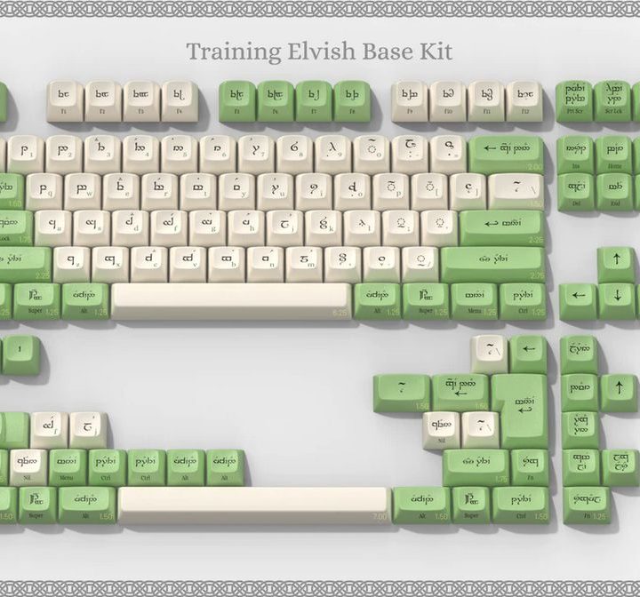 Las teclas del Elvish Keycap Set —de los elfos— están basadas en Tengwar, un sistema de escritura que fue inventado por J.R.R. Tolkien y que se usa para escribir el Sindarin, que es una de las lenguas que hablan los elfos en la película. Las teclas están grabadas con el máximo de precisión idiomática, ya que incluso aquellas que llevan una palabra como Shift o Delete tienen la traducción correspondiente.