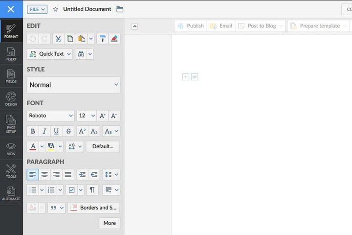 Zoho Docs no es tan conocida como Microsoft Online Office o Google Docs y en realidad tampoco se parece a ninguno de estos servicios. Recientemente, se convirtió en una especie de app de productividad. Todavía puedes crear hojas de cálculo, documentos y presentaciones. Simplemente no esperes que la interfaz del usuario se vea como la de Google Docs o Microsoft Office. Esta interfaz por sí sola es práctica y fácil de usar, pero a los entusiastas de Microsoft y Google podría no gustarles su diseño poco conocido y que tiene una serie de menús ocultos. Pero Zoho ofrece más opciones cuando se trata de importar documentos de otros servicios en la nube como Dropbox, Google Drive y OneDrive.