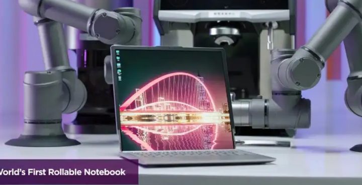 El portátil, por un lado, cuenta con un aspecto similar al Thinkpad X1 Fold, dispositivo con pantalla OLED plegable y que se estira de manera vertical cuando reacciona a ciertos contenidos.