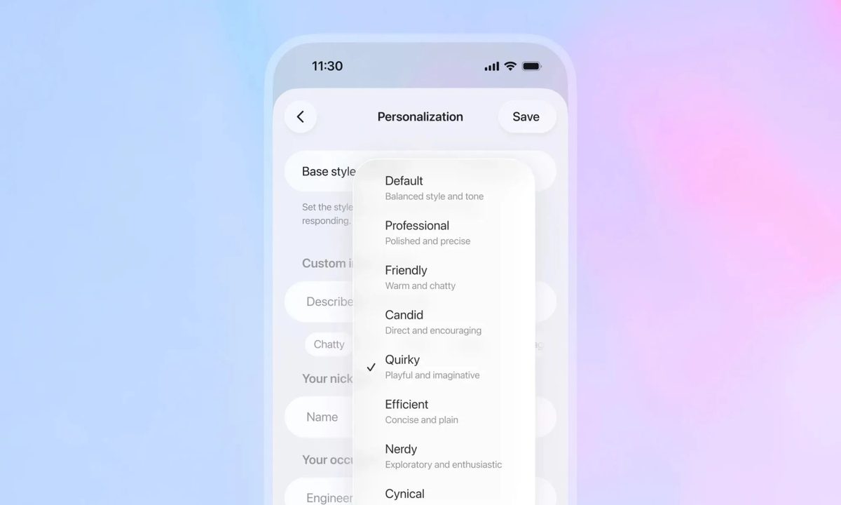 • Los usuarios también verán nuevas herramientas para personalizar el tono de ChatGPT con ajustes preestablecidos como Amigable, Profesional, Cándido y más, lo que hace que la interacción se sienta menos robótica y más personal.