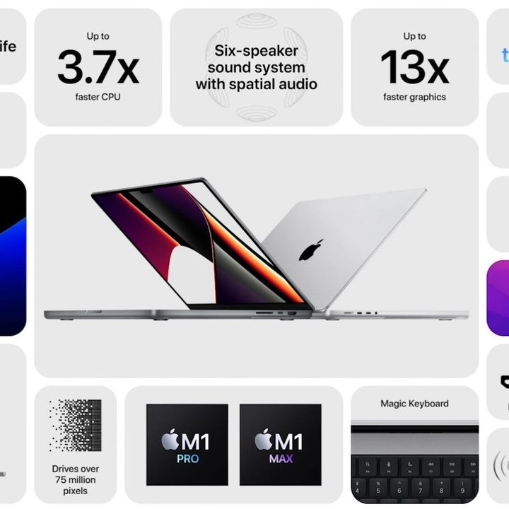 La nuevo MacBook Pro es, al menos en el papel, más rápida que las versiones actuales: un máximo de 21 horas de batería, procesador 3.7 veces más veloz, mejor sistema de audio espacial y hasta 64 GB de memoria interna, entre otras especificaciones.