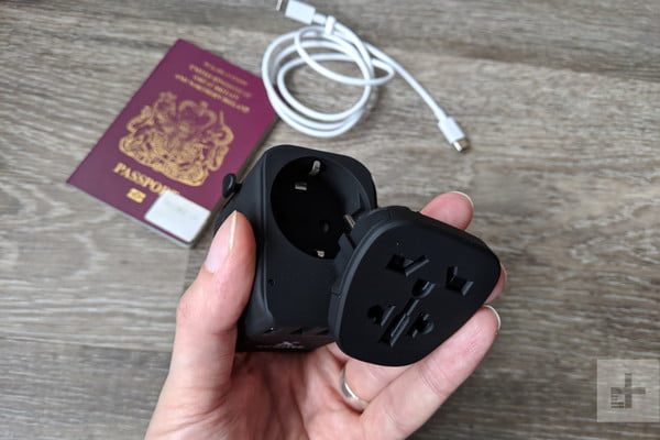 También cuenta con una pata desmontable y deslizable que se puede colocar en la parte superior junto a las puntas de Unión Europea, para hacer que funcione para Reino Unido. El inconveniente es que solo tiene dos puertos USB-A que ofrecen 2.1A cada uno para un máximo de salida simultánea de 2.4A o 12W, lo que significa que solo puede cargar teléfonos y tabletas.