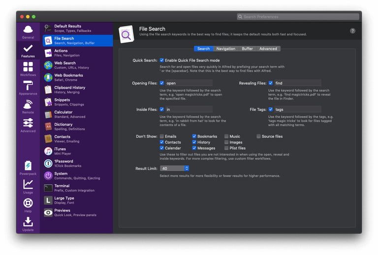 Alfred es algo así como Spotlight con un poco de Siri. Es un lanzador de aplicaciones, pero que es capaz de hacer mucho más. Con Alfred, puedes realizar cálculos rápidamente, realizar búsquedas en la web y encontrar rápidamente definiciones de palabras, entre muchas otras funciones.