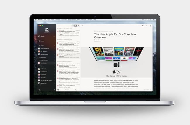 Google Reader puede haber desaparecido, pero un lector de RSS adecuado sigue siendo una necesidad. Afortunadamente, Reeder es uno de los mejores. La aplicación de escritorio goza de un magnífico acabado, junto con extensiones compartidas, un modo de navegación privada y soporte para la mayoría de los servicios RSS (Feedly, Feedbin, Fever, etc.). Temas, controles de gestos, y una gran cantidad de personalización también vienen de serie.