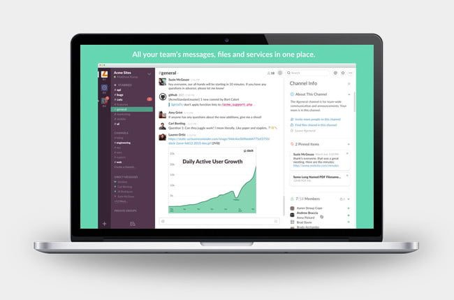 Esta aplicación de mensajería tiene un gran uso en las oficinas. La aplicación de escritorio del servicio cuenta con todas las herramientas disponibles en la versión basada en el navegador de Slack, es decir, canales privados, integración con Giphy, temas, junto con un mejor control de las notificaciones y un mayor soporte para múltiples equipos.