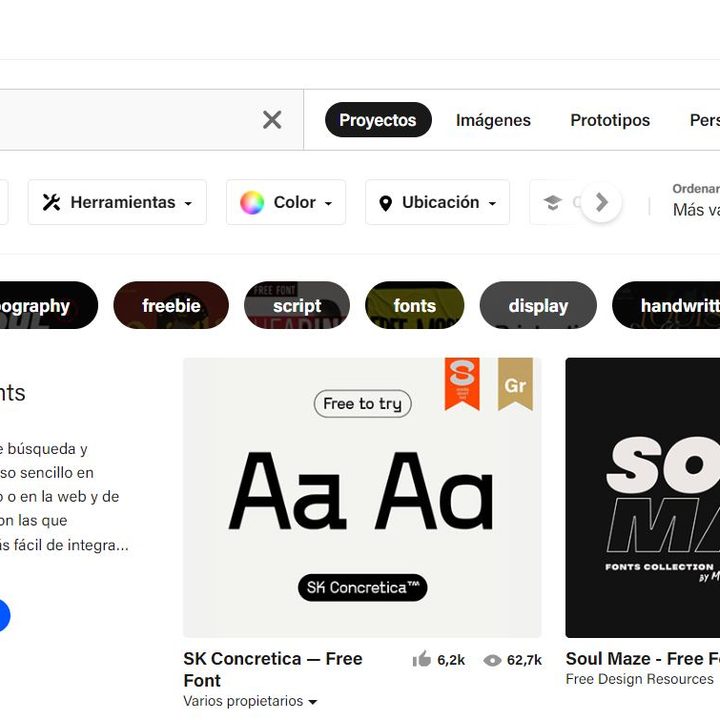 Para ello, simplemente debes buscar “fuentes gratuitas” (o “free fonts”, en inglés) en Behance. No siempre encontrarás un conjunto completo de fuentes con múltiples versiones, pero definitivamente hallarás algo que llame tu atención. De cualquier manera, es la mejor opción en caso de que necesites opciones para un proyecto de diseño gráfico, ya que encontrarás fuentes relacionadas con logotipos, afiches para redes sociales, etc.
