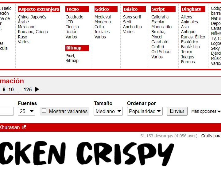 De manera predeterminada, Fontspace muestra todas las fuentes, pero si quieres ver solo las que están disponibles para uso comercial gratuito, puedes seleccionar esa categoría: “Commercial Use Fonts” (ya que el sitio está en inglés). También puedes filtrar por colecciones, estilos, popularidad o las que recién han sido añadidas a la plataforma.