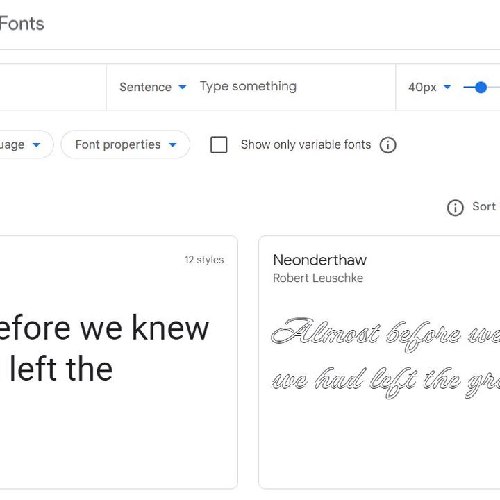 Google Fonts tiene una de las mayores colecciones de fuentes listas para la web, con más de 1,300 familias de fuentes diferentes en su sitio. Puedes filtrar las búsquedas por categoría, idioma, popularidad e incluso atributos como grosor o ancho.