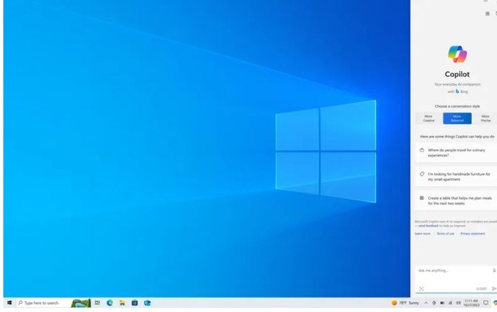 Copilot en Windows 10 funciona de manera muy similar a como aparece en Windows 11, con un botón en el lado derecho de la barra de tareas que le permite abrir el chatbot impulsado por IA para responder consultas y generar texto. Hay algunas ligeras diferencias en las características simplemente porque algunas de las habilidades o acciones disponibles en Windows 11 no existen en Windows 10.
