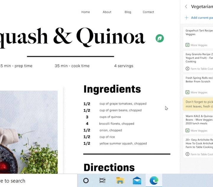 - Las colecciones en Microsoft Edge se vuelven más inteligentes con una nueva integración de Pinterest: la sección Colecciones te ayudará a organizar, guardar y compartir tu vida en línea al permitirte crear grupos de contenido de toda la web. Los enlaces, las imágenes, el texto y las notas se pueden guardar juntos en varios sitios, páginas y sesiones. Esta nueva integración con Pinterest te ayudará a encontrar ideas para inspirar, ahorrar tiempo y ser más productivo al sugerir contenido relacionado con lo que ya has recopilado.