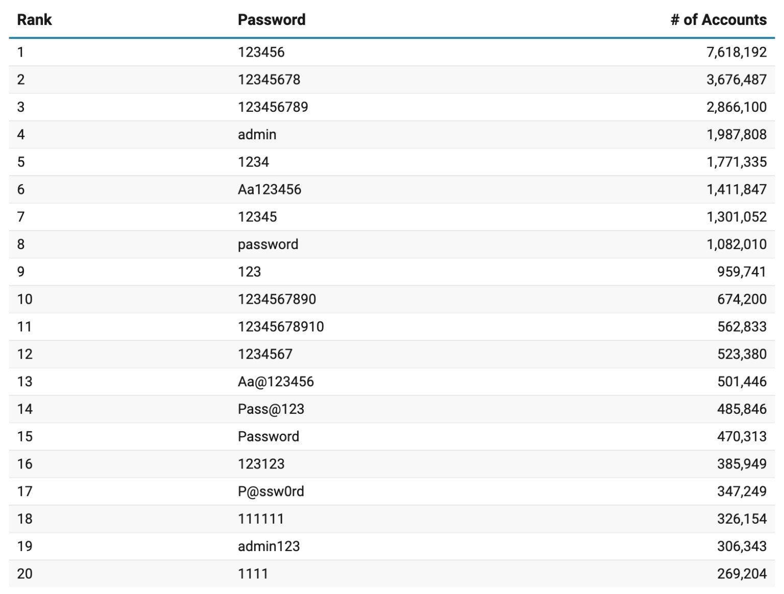 - Alrededor del 38,6% de las 1.000 contraseñas principales incluían la cadena “123”.