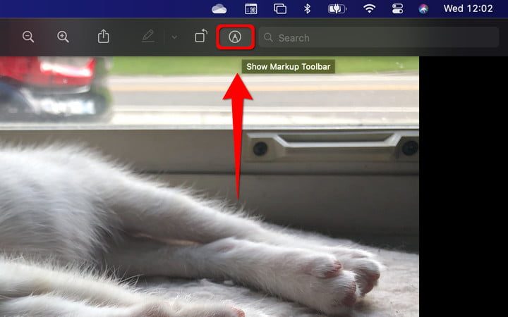 Abre la imagen que deseas editar en Vista Previa. Luego haz clic en el botón que muestra la punta de un bolígrafo dentro de un círculo.