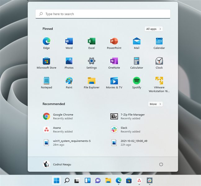 Además, en lugar de tener algo útil en su sección inferior, el menú Inicio de Windows 11 solo ofrece algunas aplicaciones y archivos que usaste recientemente. En teoría, esto podría ser algo bueno, pero en la práctica la función no es del todo útil. Si tienes las aplicaciones que usas regularmente en la sección Fijada (Pinned), el área de las apps Recomendadas (Recommended) del Menú de inicio no tiene mucho sentido.