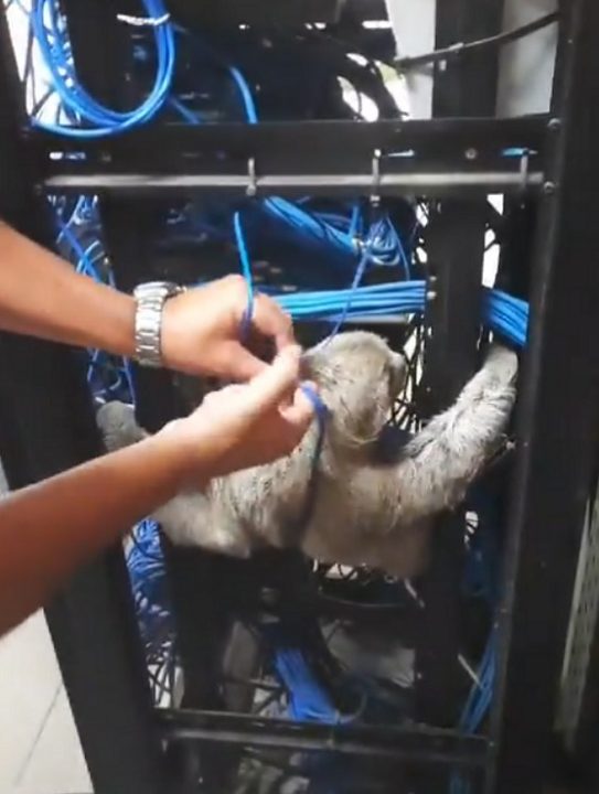 Una situación realmente insólita es la que se vivió hace unas semanas atrás, el pasado 8 de mayo, en un rack de servidores en un centro de datos universitario en Paraíba, Brasil. Esto porque entre cables y enredado, encontraron a un pobre Perezoso.