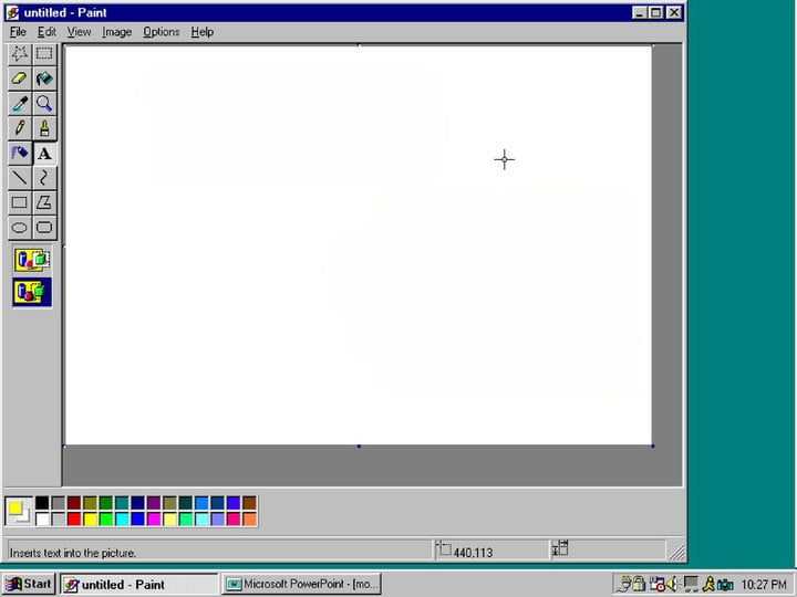 Y sin embargo era posible. Cualquiera podía sentarse frente a su nueva PC en casa y con cierta habilidad con el ratón crear extrañas configuraciones cubistas de formas superpuestas; otros pocos clics y esas formas se rellenarían de color (o, desde el principio, en escala de grises). No había complicaciones ni complejas coordenadas orientadas a ingenieros y diseñadores: con su conjunto estándar de pinceles, latas de pintura, gomas de borrar y herramientas de formas, MS Paint ofrece lo suficiente para ser versátil sin sobrepasar sus limitaciones.