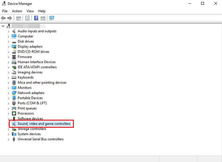 Paso 2: dentro del Administrador de dispositivos verás una lista de opciones de iconos. Elige los controladores de Sonido, video y juego. Si tienes una tarjeta de sonido, aparecerá allí.
