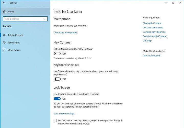 Si cuentas con micrófono, verifiquemos que la configuración de Cortana sea correcta.