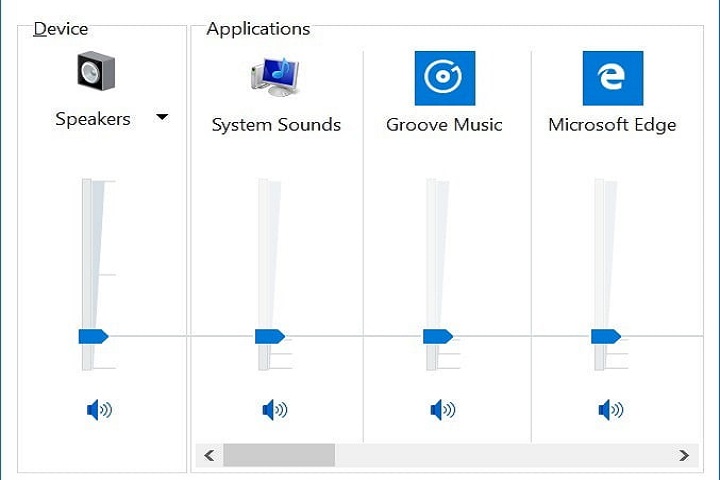 Si una de tus actualizaciones recientes de Windows te ha causado problemas de sonido como estos, te recomendamos primero mirar bien el mezclador de volumen y ver si algo ha cambiado. Mira la barra de tareas, y deberías encontrar allí el icono de un altavoz a la derecha. Haz clic derecho y elije Abrir Mezclador de volumen. Verifica los controles deslizantes, especialmente para las aplicaciones de terceros, y asegúrate de que se vean normales. Es posible que algunos de los controles deslizantes se hayan bajado demasiado, debiendo ajustarse para fijar el volumen adecuado.