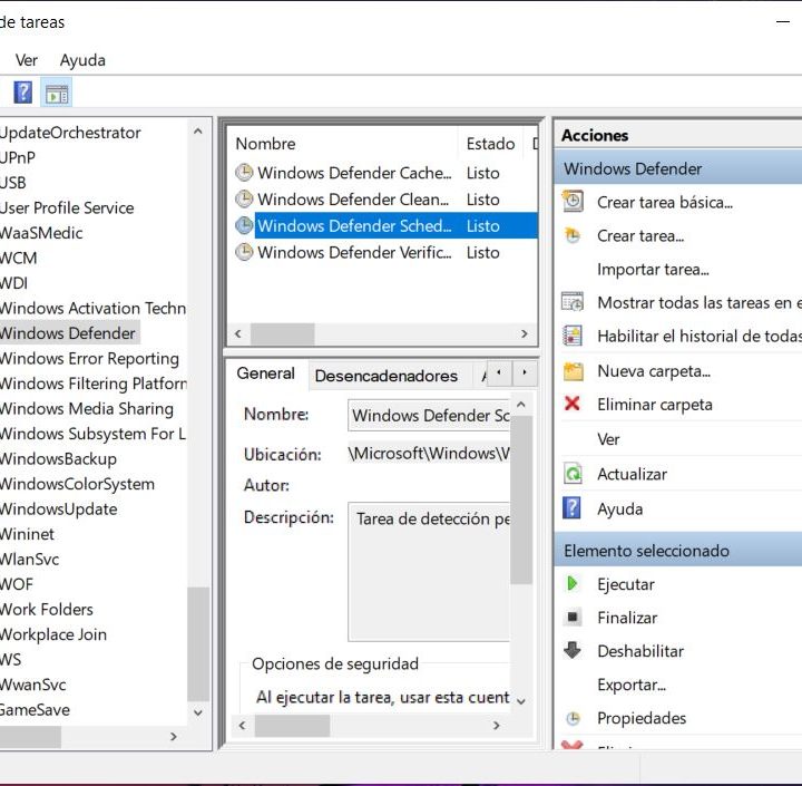 No tienes que descargar ningún software antivirus de terceros, ya que Windows Defender, siempre que lo hayas actualizado, puede hacer un trabajo efectivo. Ingresa “Programador de tareas” en la barra de búsqueda y haz clic en la aplicación cuando aparezca en los resultados para abrirla. En la Biblioteca del Programador de tareas, en el panel izquierdo, dirígete a Microsoft > Windows > Windows Defender.