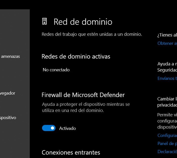 Haz clic en Red de dominio y coloca el Firewall de Microsoft Defender en Activado. Después, regresa y haz lo mismo para la Red privada y la Red pública.