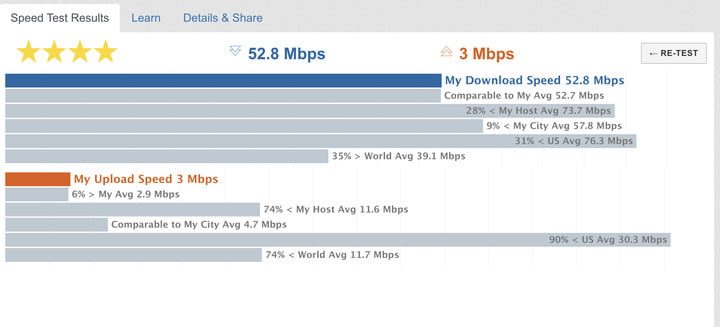 Una vez realizadas las pruebas, los resultados mostrarán la velocidad según la clasificación de otros usuarios recientes. También muestra un gráfico con tu conexión para comprobar si has tenido algún problema en determinado momento. Si estos números te resultan bastante desconocidos, también hay un montón de documentación y guías fáciles que te ayudarán a identificar mejor cuál es el problema de tu conexión.