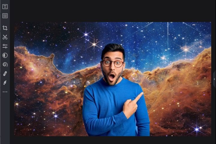 Paso 5: ahora puedes agregar la imagen a cualquier fondo que desee con herramientas de edición básicas. Icons8 no puede ayudarte con eso, pero si todavía estás en línea y buscas una solución rápida y gratuita, te sugerimos Pixlr para conseguir herramientas de edición rápida de imágenes. Carga el fondo, luego elige Agregar imagen de elemento > Agregar medios para tener finalmente tu foto recortada. ¡Es fácil!