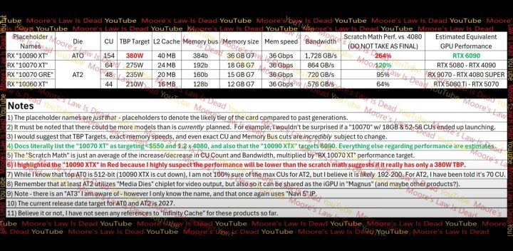 Moore’s Law Is Dead compartió una versión con marca de agua del documento que se dice que proviene de una fuente de AMD. De entrada, estamos viendo grandes cambios en el área de VRAM.