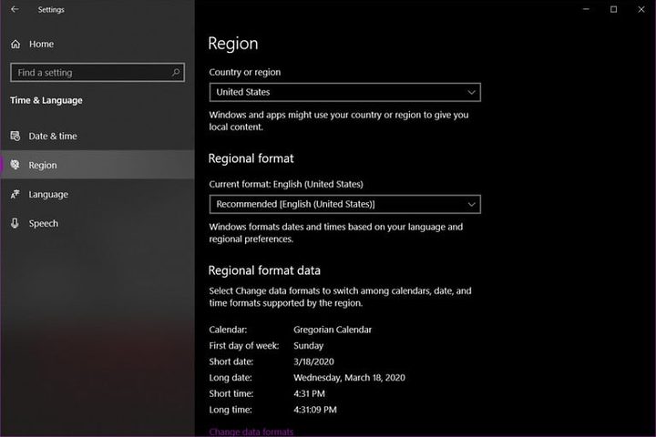Paso 3: selecciona la opción Región de la lista del lado izquierdo y verifica que Windows esté configurado en tu región correcta.