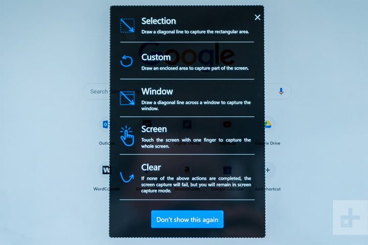 Algo nuevo en la MateBook X Pro en el 2019 es la manera de hacer capturas de pantalla. Activas un modo de captura arrastrando tres dedos de arriba hacia abajo sobre la pantalla, y luego puedes enmarcar el área que quieres seleccionar para la captura, o elegir una ventana independiente.