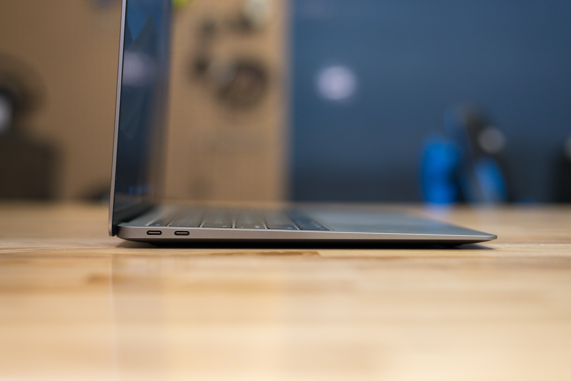 Prepárate para comprar algunos accesorios y adaptadores, porque la nueva MacBook Air solo tiene tres puertos en total, uno de los cuales es (afortunadamente) un conector para audífonos. Los otros dos son puertos Thunderbolt 3 USB-C. Estamos felices de ver USB-C aquí, ya que hace que la MacBook Air sea más versátil. Puedes usar un cable USB-C a Lightning para cargar tu iPhone, conectarlo a monitores externos de alta resolución o incluso encender una GPU externa.