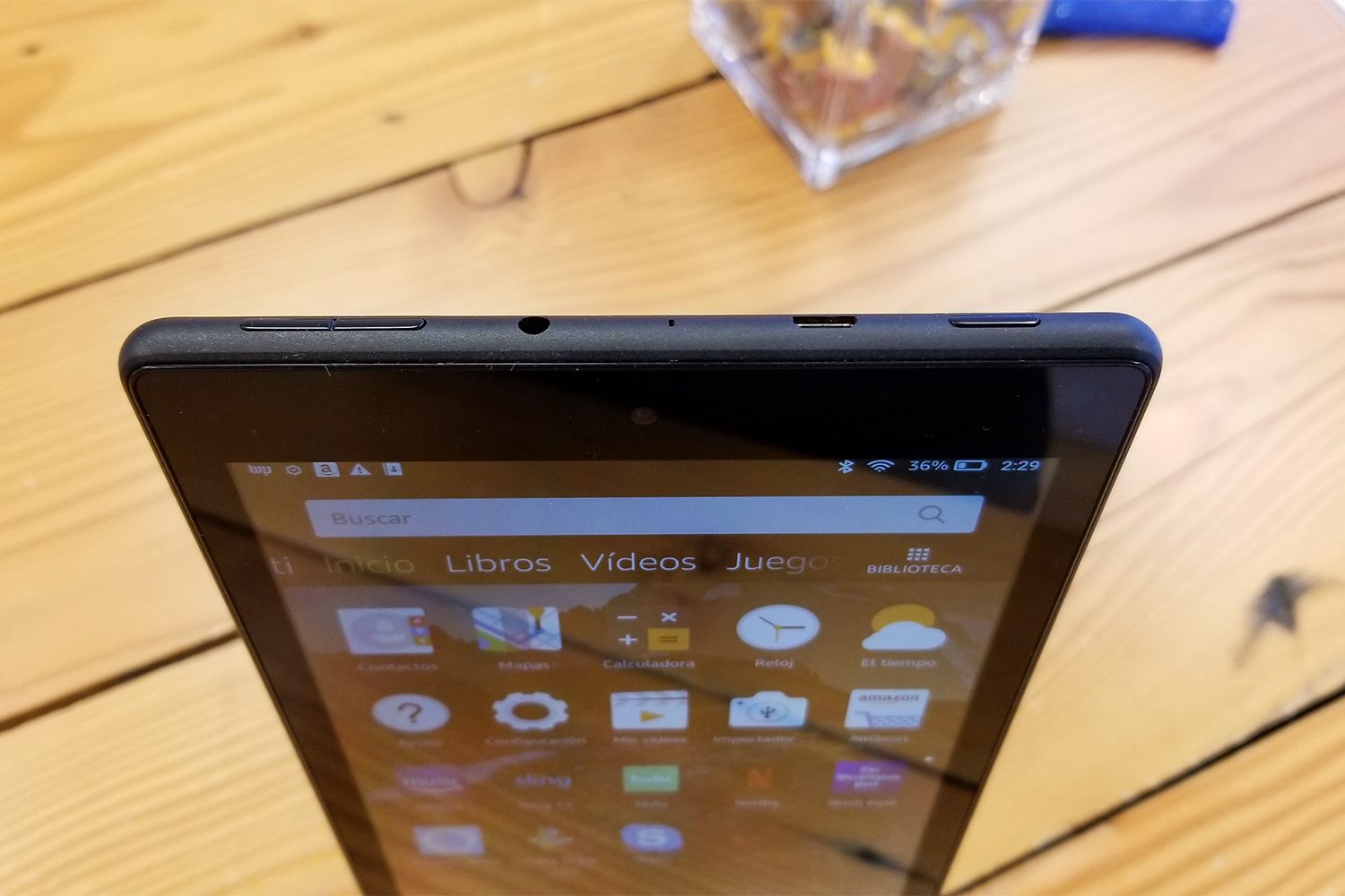 Todos los botones del Fire HD están en la parte superior (en orientación vertical). El conector para auriculares de 3.5 mm y el control de volumen están en el lado izquierdo, y encontrarás un botón de encendido y un puerto de carga Micro-USB en el lado derecho. También hay una ranura MicroSD que puede agregar otros 400 GB de almacenamiento externo.