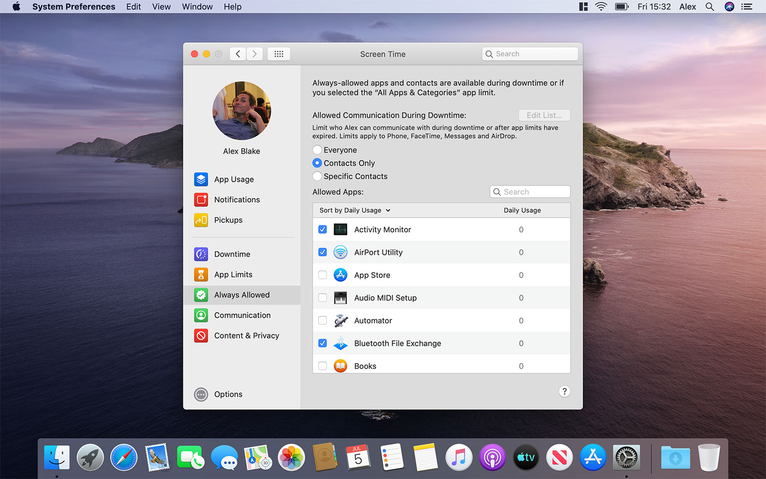Quizá pienses que las restricciones generalizadas impuestas por el Tiempo de Inactividad son un poco… digamos, restrictivas. Si deseas hacer algunas excepciones usa la sección “Siempre Permitidas” en la barra lateral.