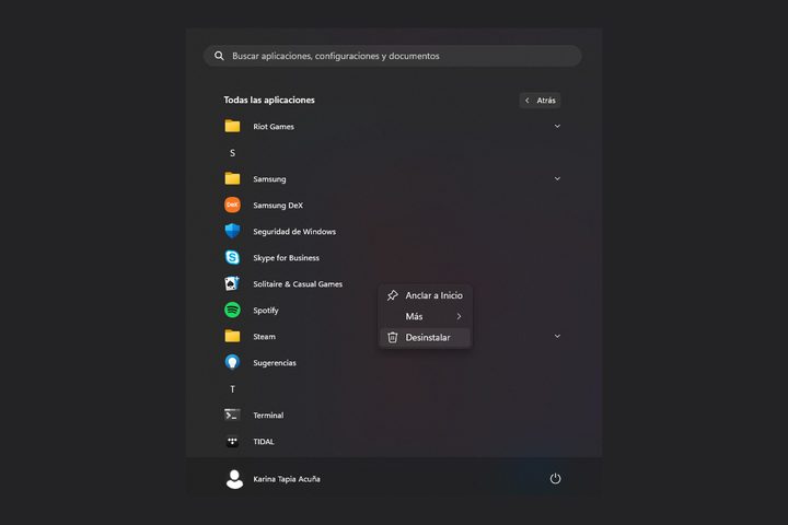 Si en tu PC tienes programas que alguna vez usaste, pero ya no necesitas, es mejor despedirse de ellos. La forma más sencilla de desinstalar una aplicación en Windows 11 es ir al menú Inicio > Todas las aplicaciones > clic derecho en la que quieras eliminar > Desinstalar.