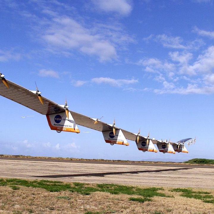 AeroVironment comenzó a construir aeronaves de gran altura y resistencia larga (HALE) para la NASA hace más de 20 años. Desde 1997, el programa de Investigación Ambiental de Aeronaves y Tecnología de Sensores de la NASA financió tres aviones no tripulados con energía solar y de celda de combustible de AeroVironment. Esa asociación culminó en el Prototipo Helios (imagen superior), un avión no tripulado ligero que en 2001 alcanzó una altitud de 18.5 millas, que sigue siendo el récord para un avión alado. Dos años más tarde, el avión no tripulado se rompió en pleno vuelo y se estrelló en el Pacífico.