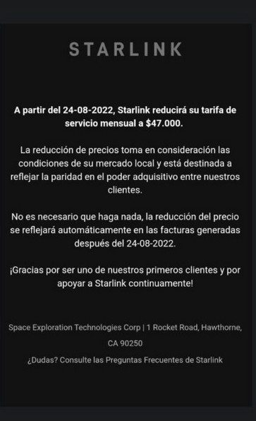 De hecho en Chile, el servicio mensual ha bajado a $47.000 pesos, lo que se puede ver en el siguiente mensaje.