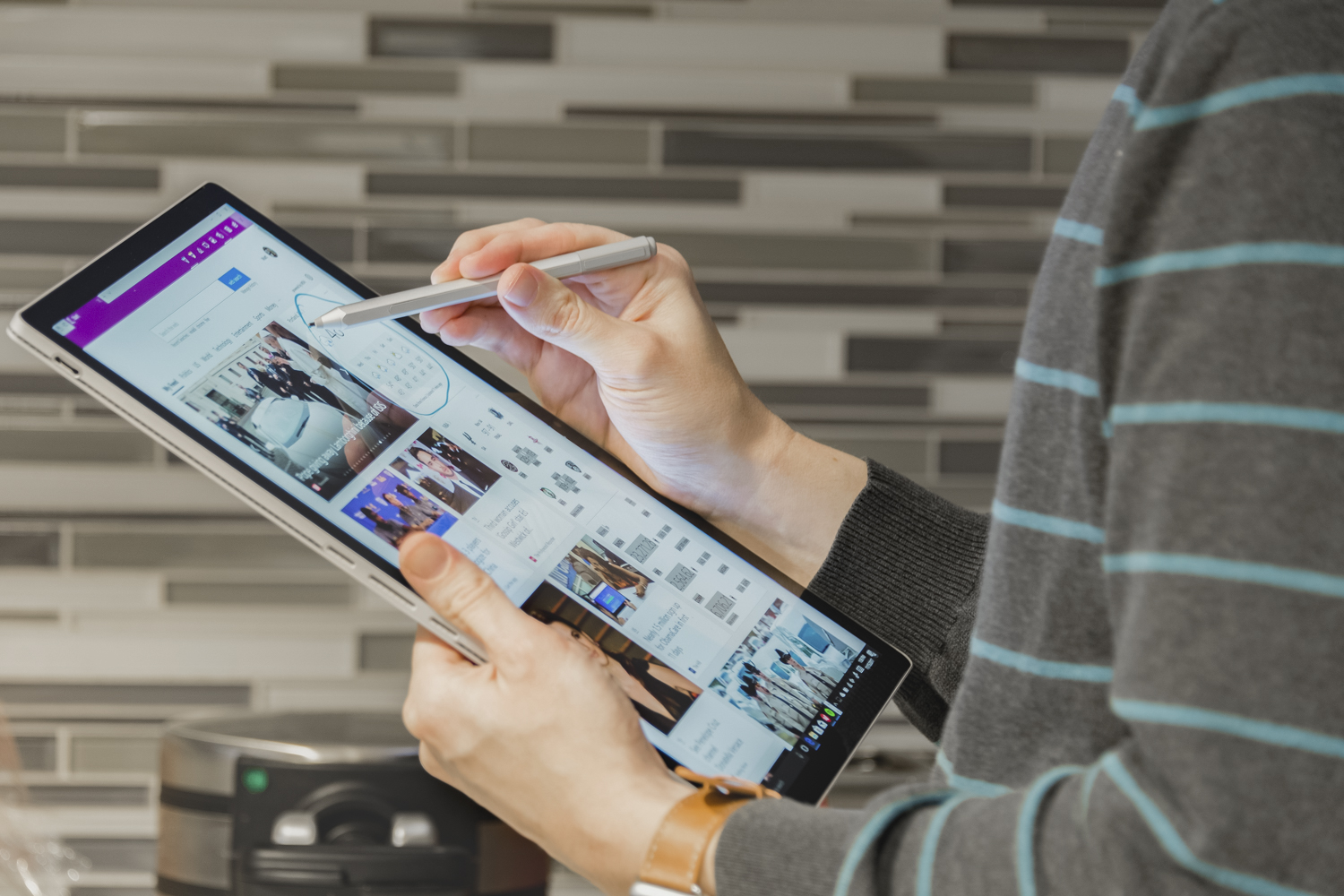 Sin embargo, puedes disfrutar del tamaño cuando sacas el bolígrafo. La pantalla ofrece un gran espacio para escribir y además es lo suficientemente grande como para actuar como un Surface Studio en miniatura cuando la tableta está sobre una mesa.