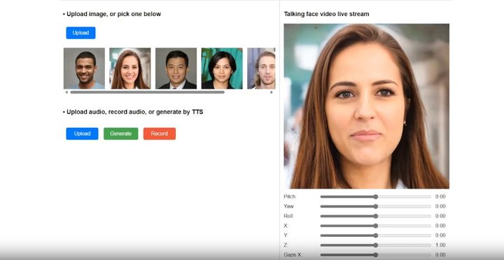 Para eso, se sube una fotografía al programa, luego se añade una instrucción y un discurso de audio que se sube al sistema, se genera el video y se puede manejar la mirada, el estado de la persona, la velocidad de las palabras.